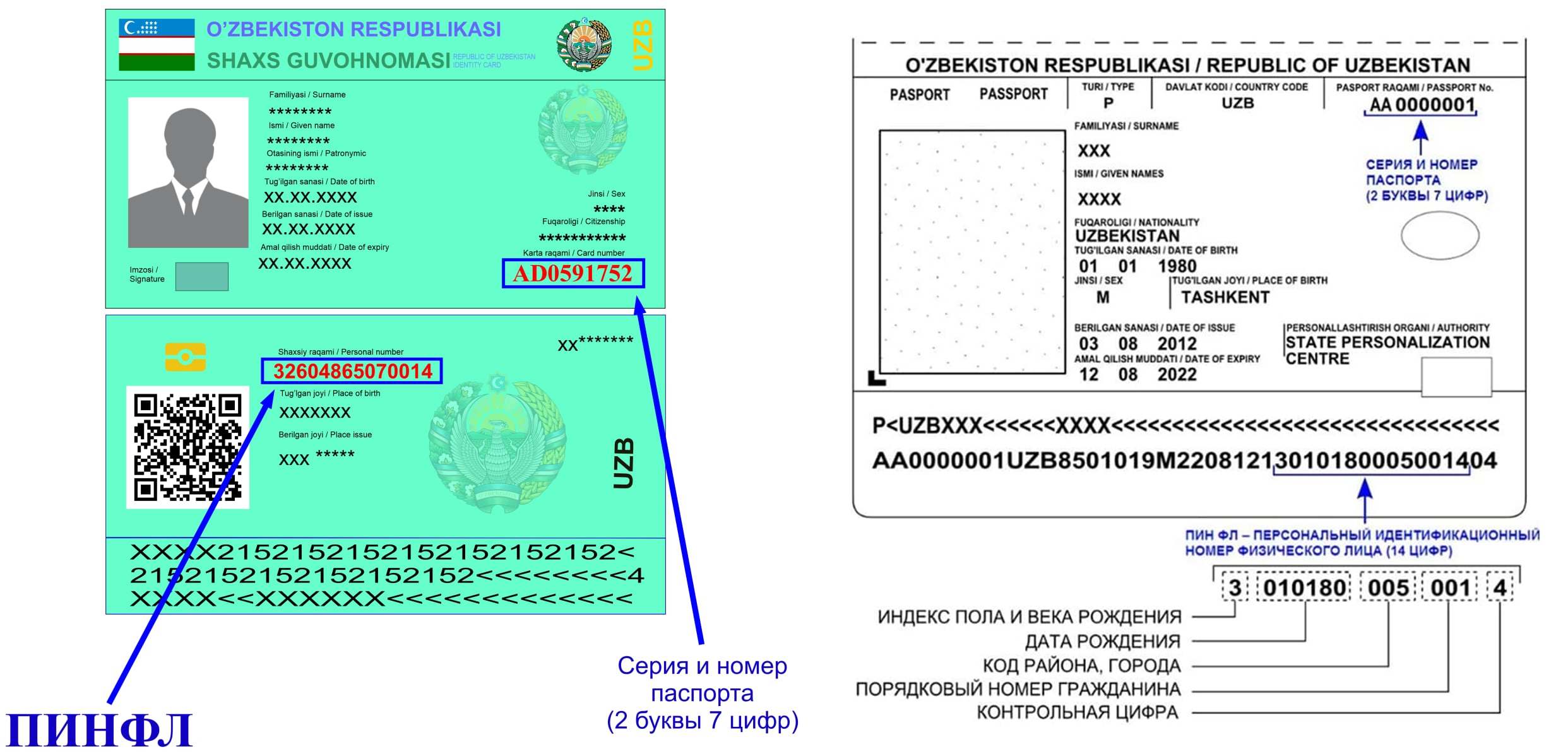 Бу рақам паспортда кўрсатилган ва жинс индексини, туғилган санани, шаҳар кодини, фуқаронинг серия рақамини кўрсатади, шунингдек, назорат рақамини ўз ичига олади. Соғлиқни сақлаш тизимида амалга оширилаётган рақамлаштириш жараёнлари туфайли шу рақам орқали шифокор бемор ҳақидаги маълумотларни – аввалги касалликлари, қабул қилган дорилари, аллергияси ва бошқаларни электрон базадан кўриш имкониятига эга бўляпти. Бу орқали шифокорлар томонидан тезкор ва хавфсиз тиббий қарорлар қабул қилинади.