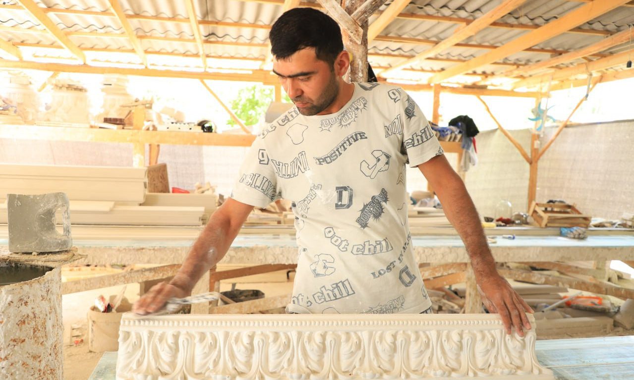 Ишлаб чиқариш жараёнида кунига 40-50 қоп гипс маҳсулотидан тайёр безаклар тайёрланади. Асосан қўл меҳнати талаб қилинадиган ҳунардан шунга яраша даромад топилмоқда.
